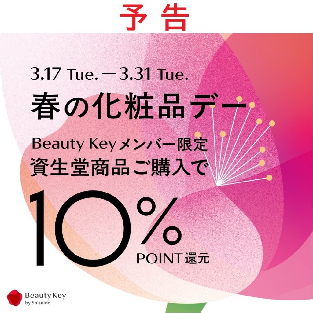 <予告>3/17~3/31 資生堂BeautyKeyポイント10%還元「春の化粧品デー」