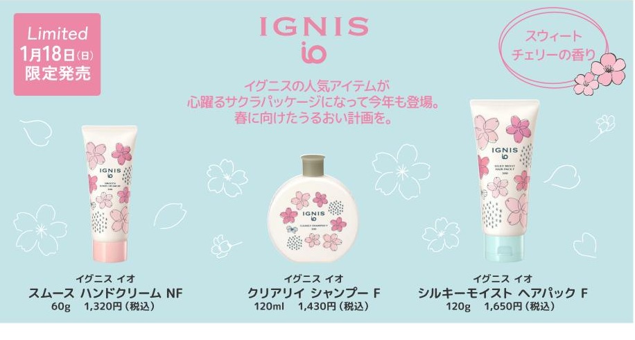 人気のハンドクリームとシャンプー・ヘアパックの3品を、今だけのサクラの香りとパッケージで限定発売