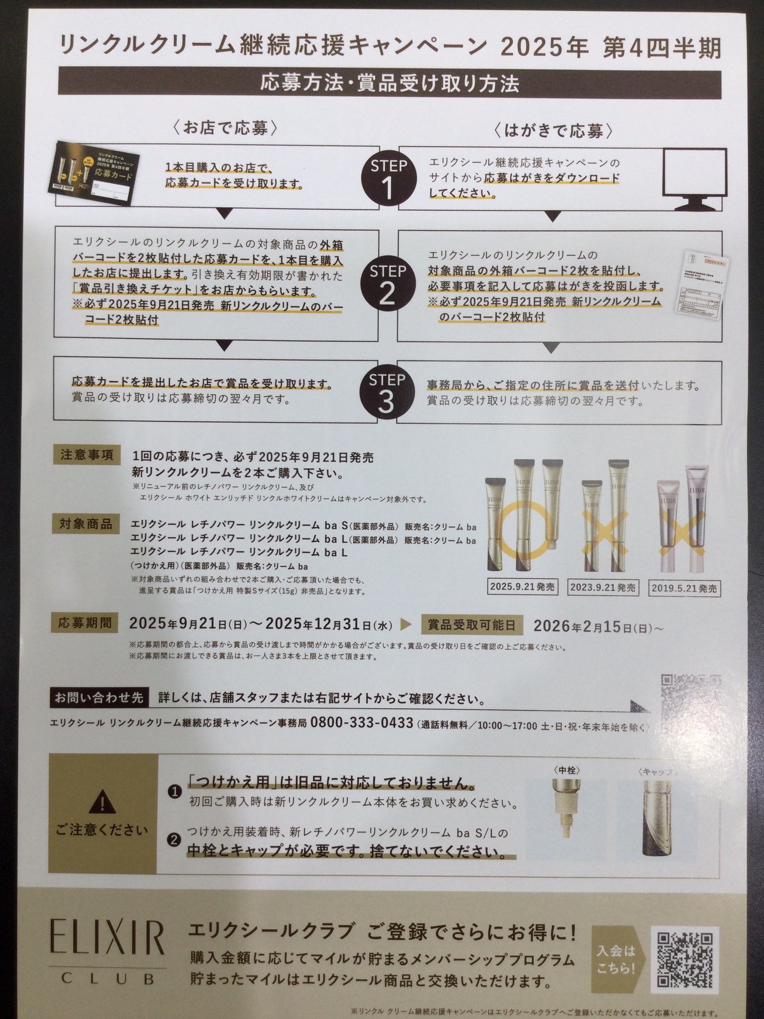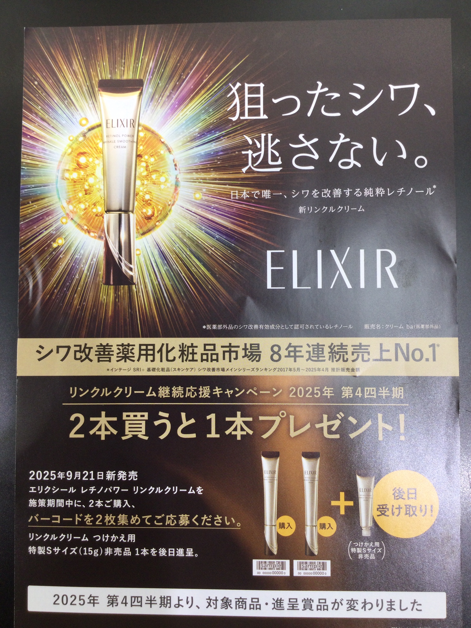 9/21 エリクシール レチノパワー リンクルクリーム ba 新・継続応援キャンペーンも