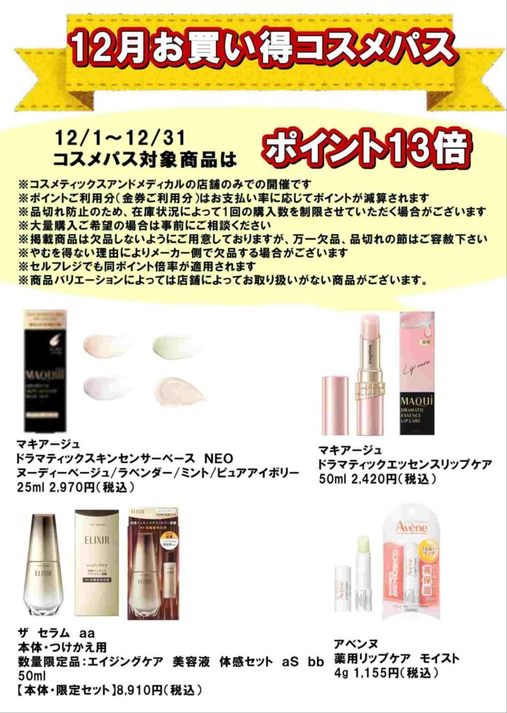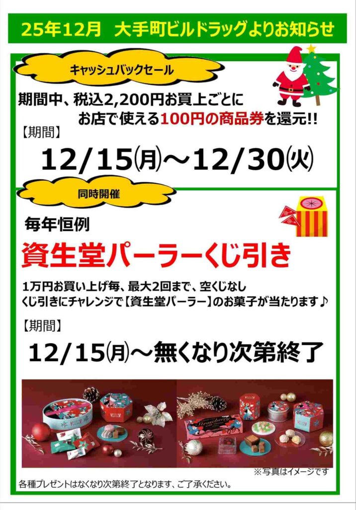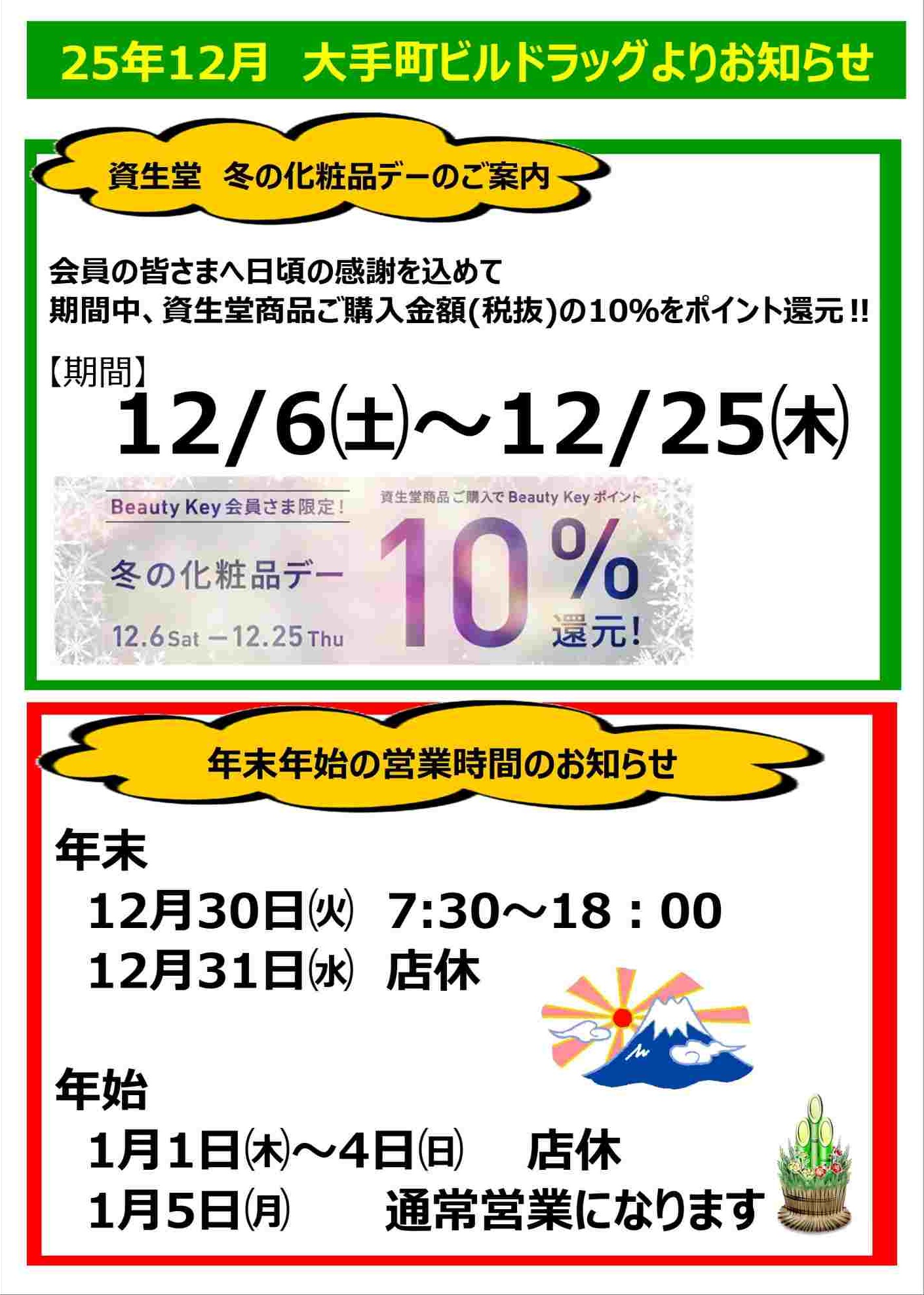 大手町ドラッグ店資生堂コーナーよりお知らせ