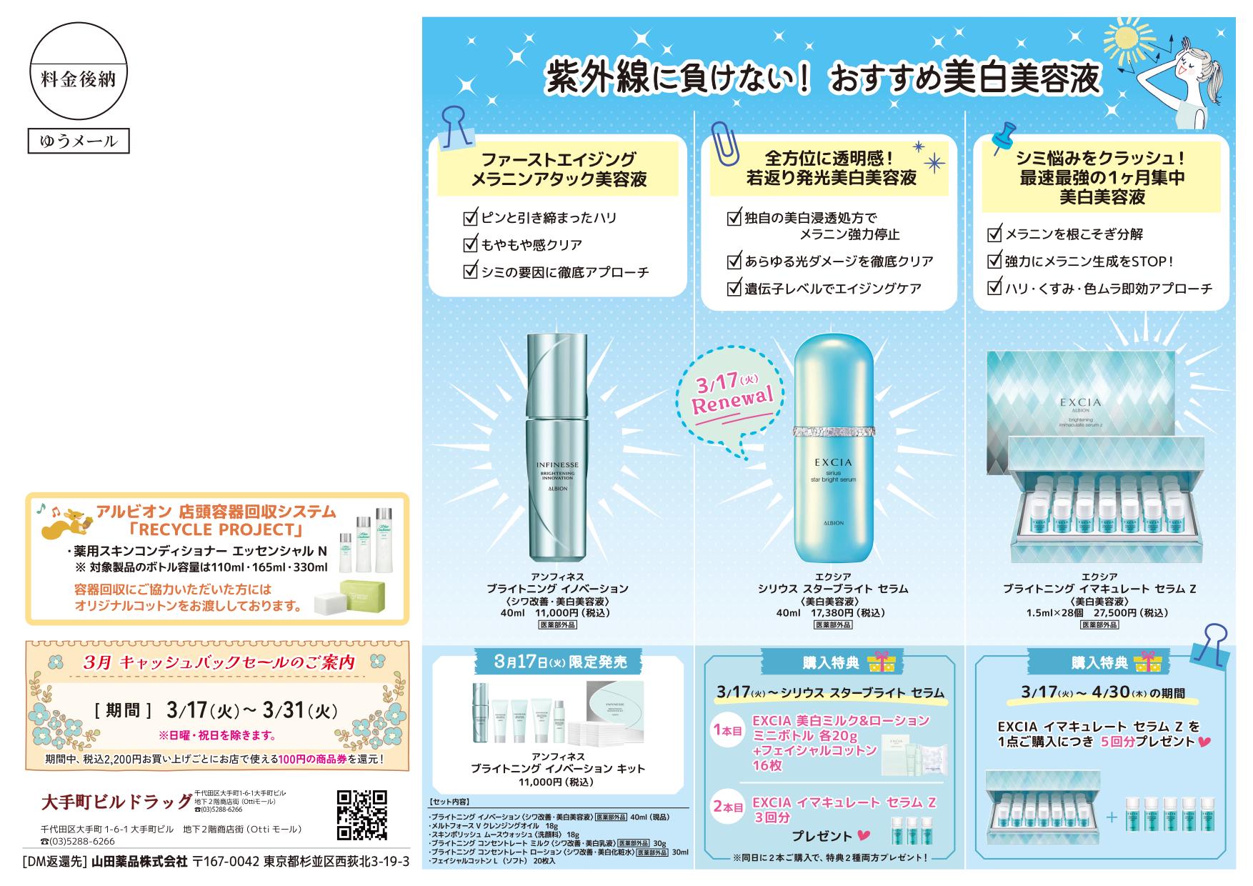 大手町ビルドラッグ店アルビオンコーナーよりお知らせ