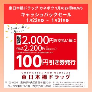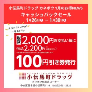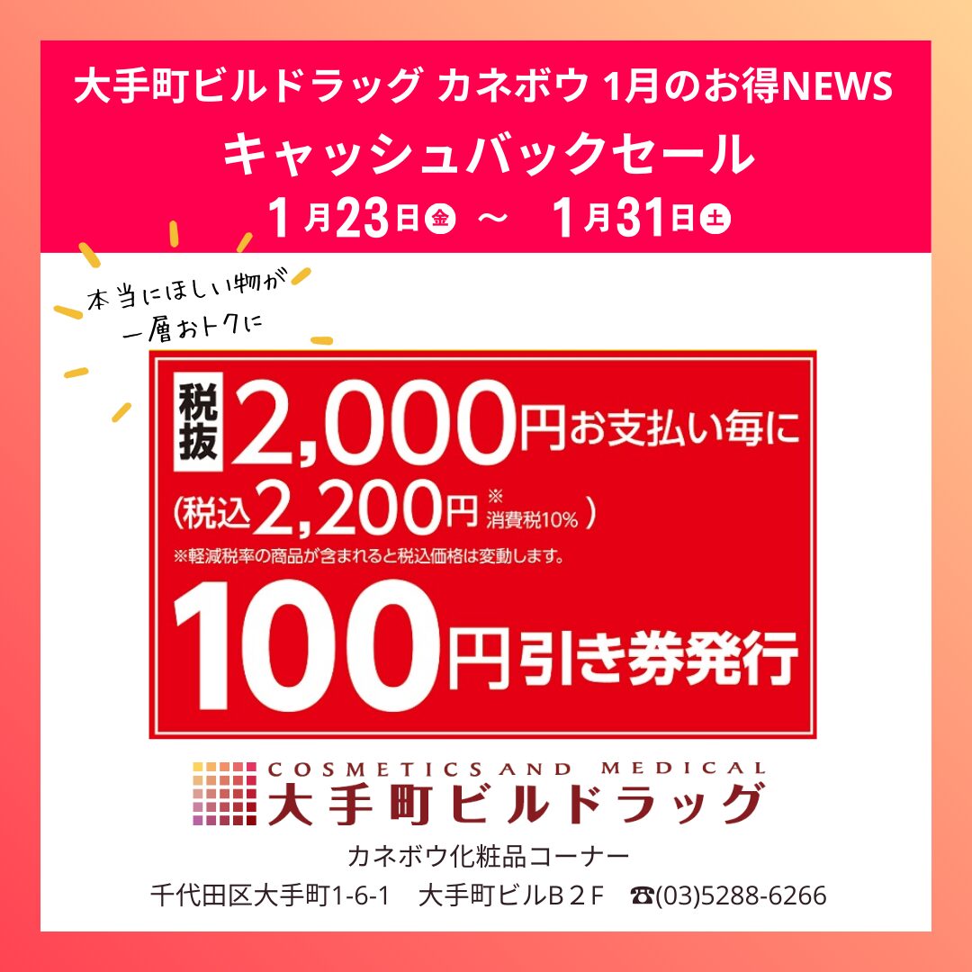 こんにちは、大手町ビルドラッグ店カネボウからのお知らせです。
