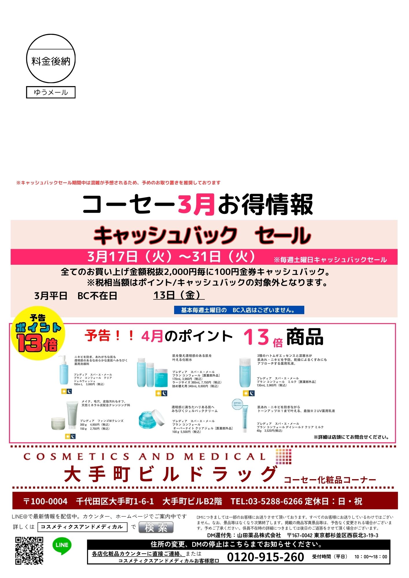 大手町ビルドラッグ店コーセーコーナーから今月のお知らせ