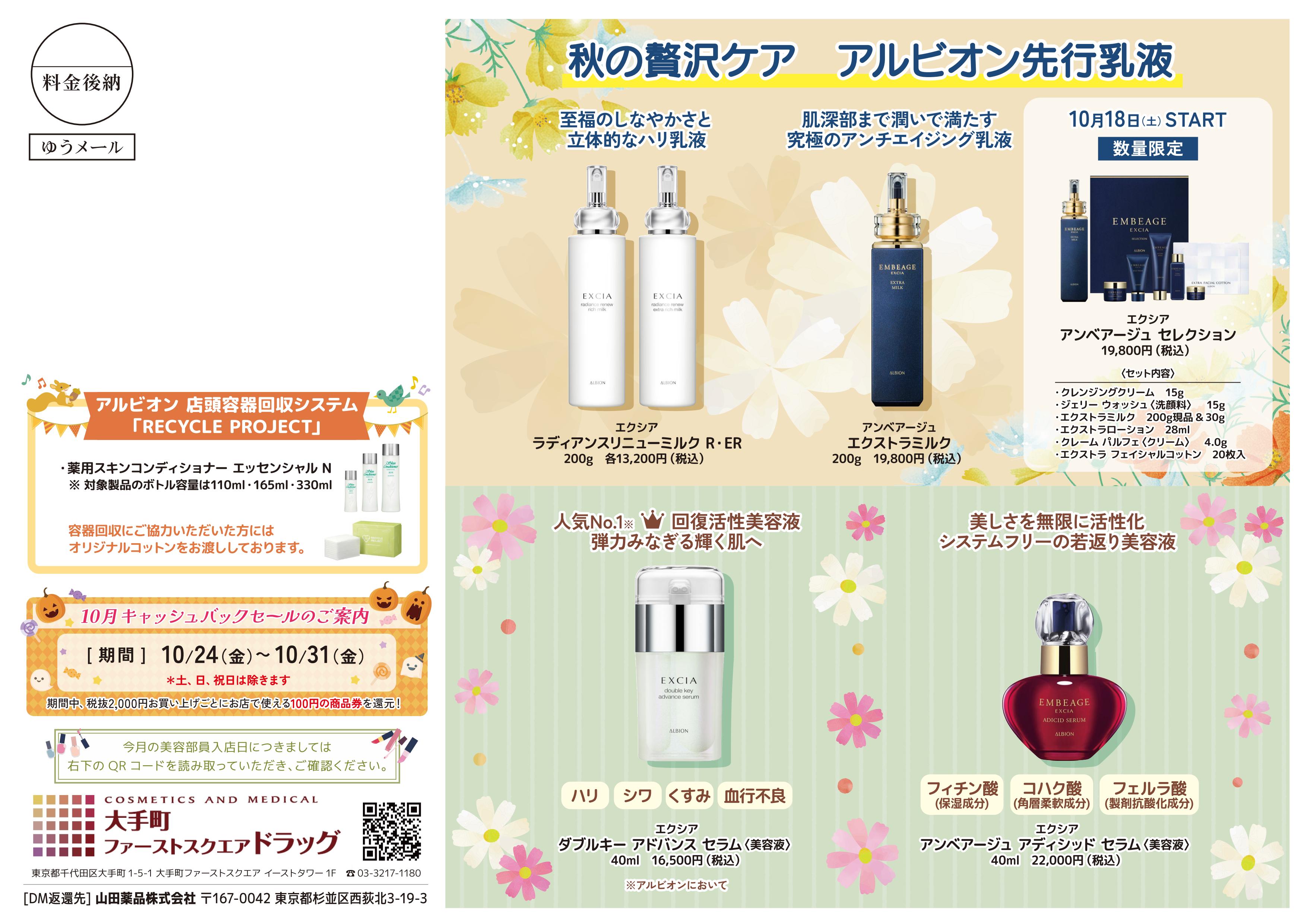 大手町ファーストスクエアドラッグ店アルビオンコーナーよりお知らせ