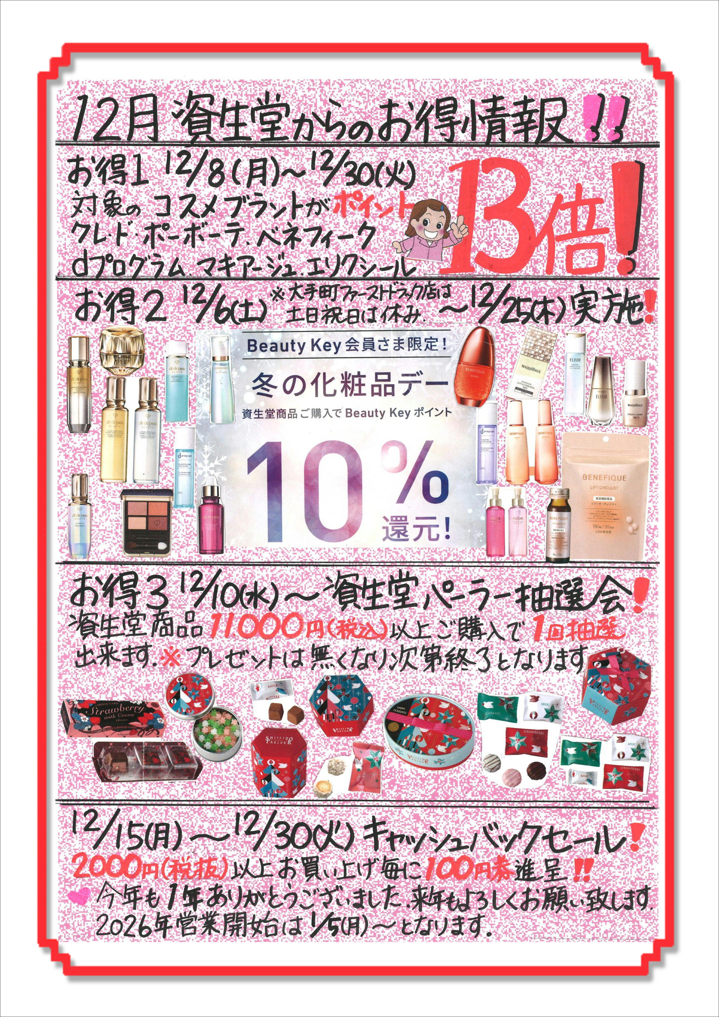 大手町ファーストスクエアドラッグ店資生堂コーナーよりお知らせ