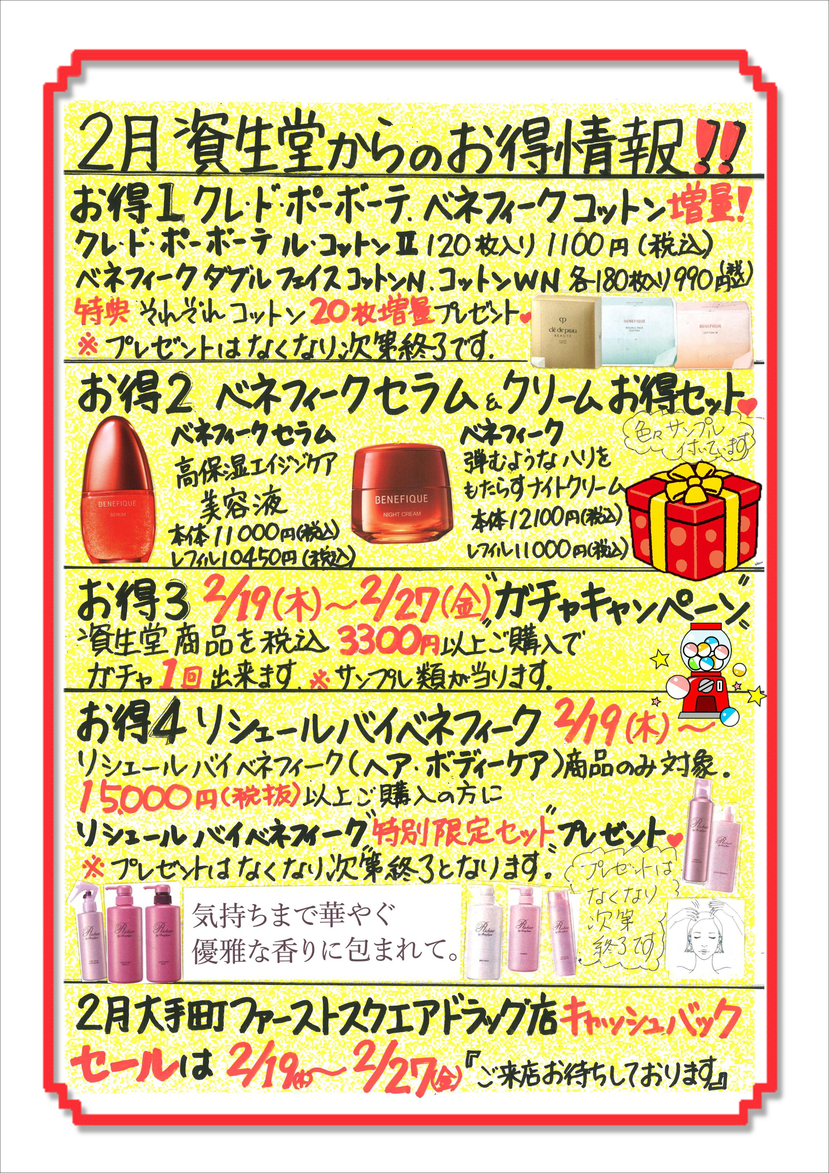 大手町ファーストスクエアドラッグ店資生堂コーナーよりお知らせ