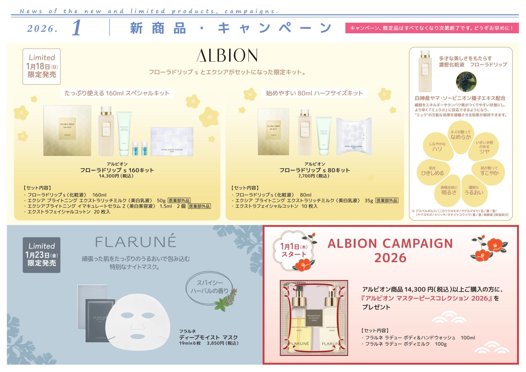 アルビオンコーナーではこの時期おすすめアイテム&1月発売数量限定品に加え、