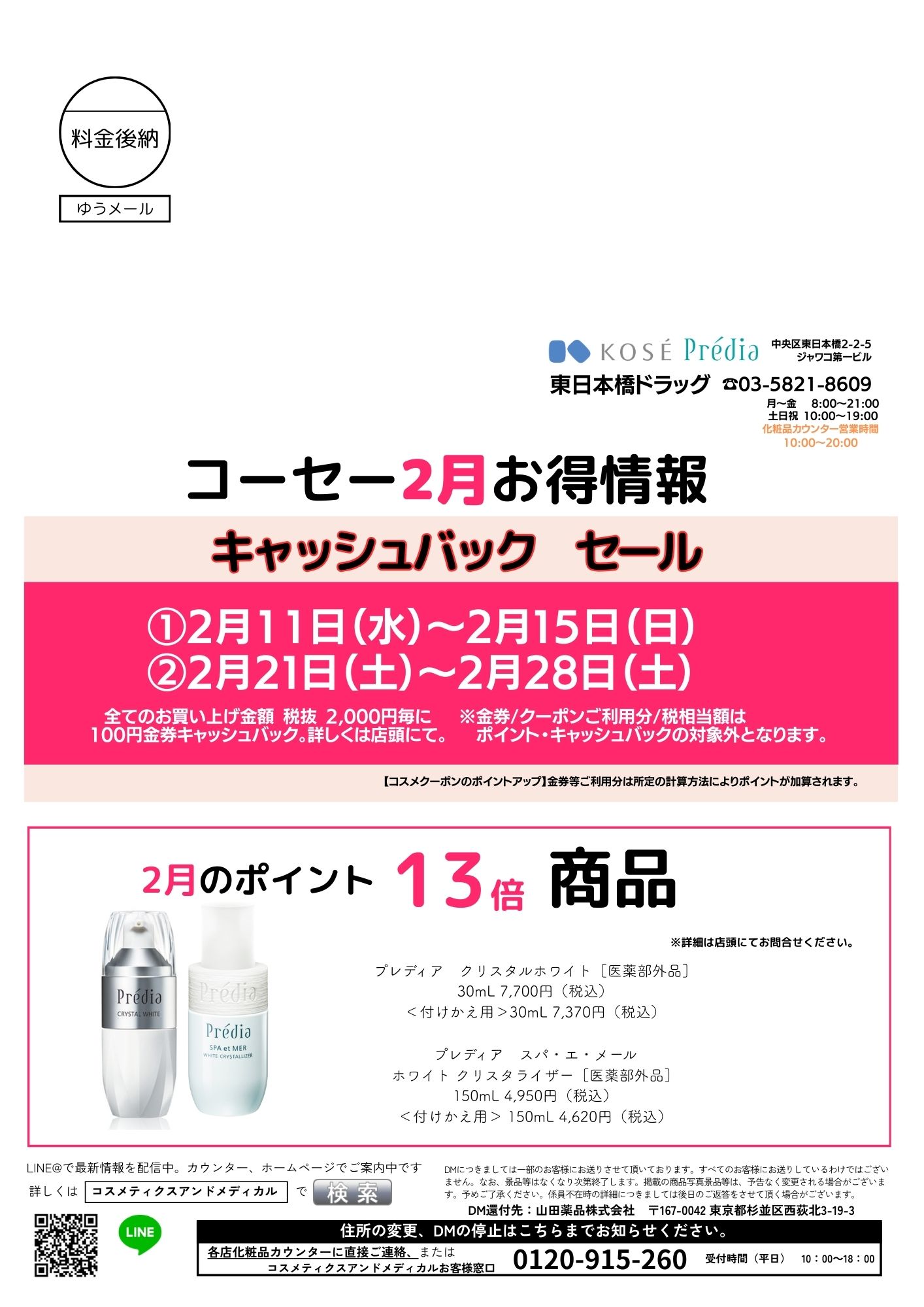 東日本橋ドラッグ店コーセーコーナーから今月のお知らせ