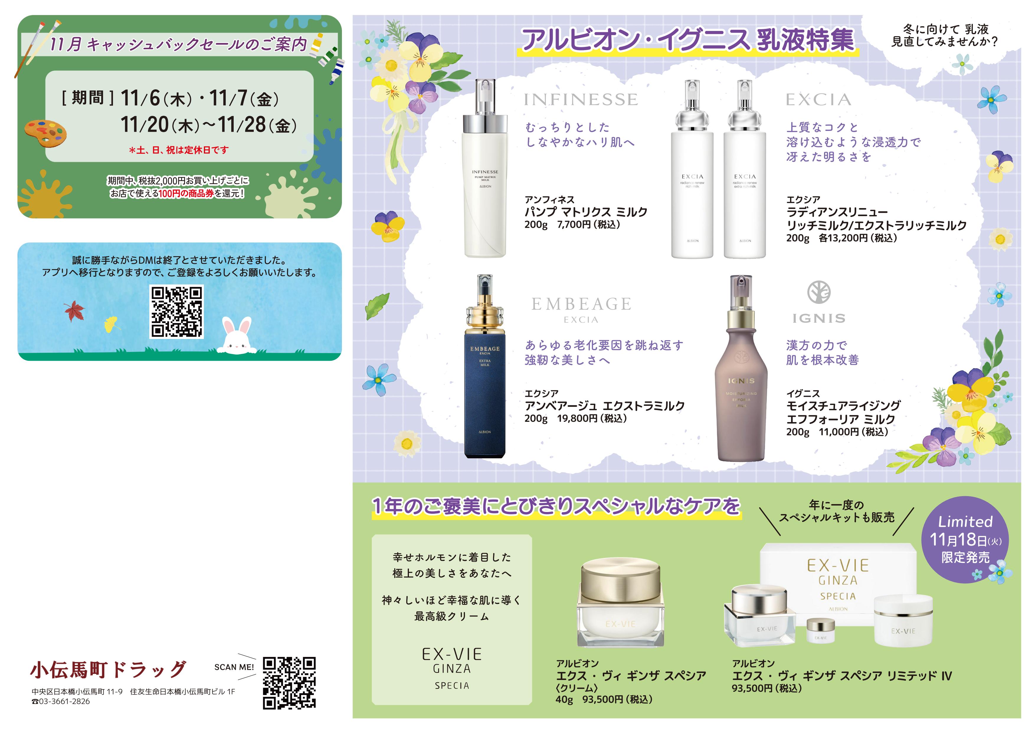 小伝馬町ドラッグ店アルビオンコーナーよりお知らせ