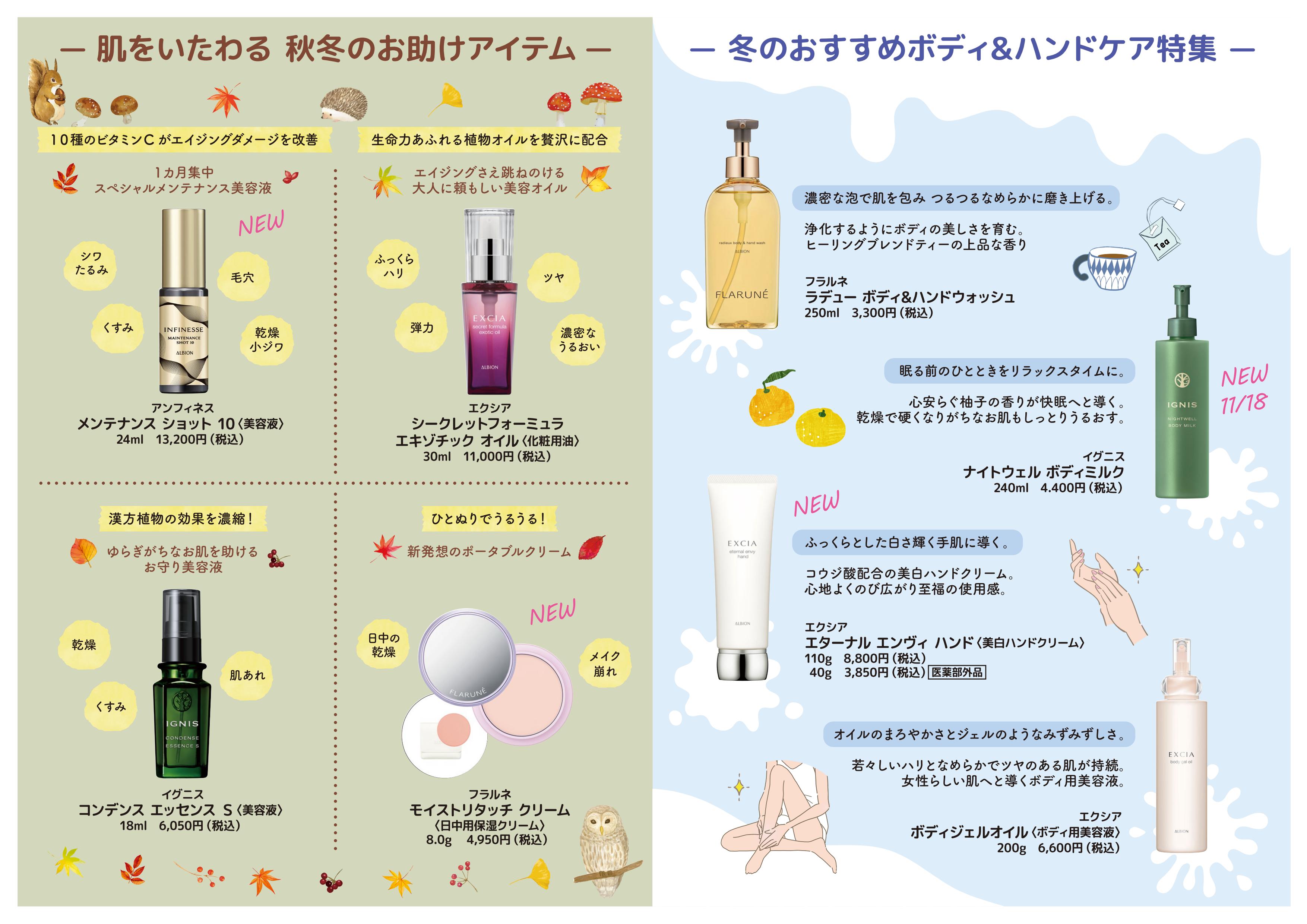 アルビオンコーナーでは、これからの季節にぴったりなスキンケア・メイクアイテムをご用意しております。