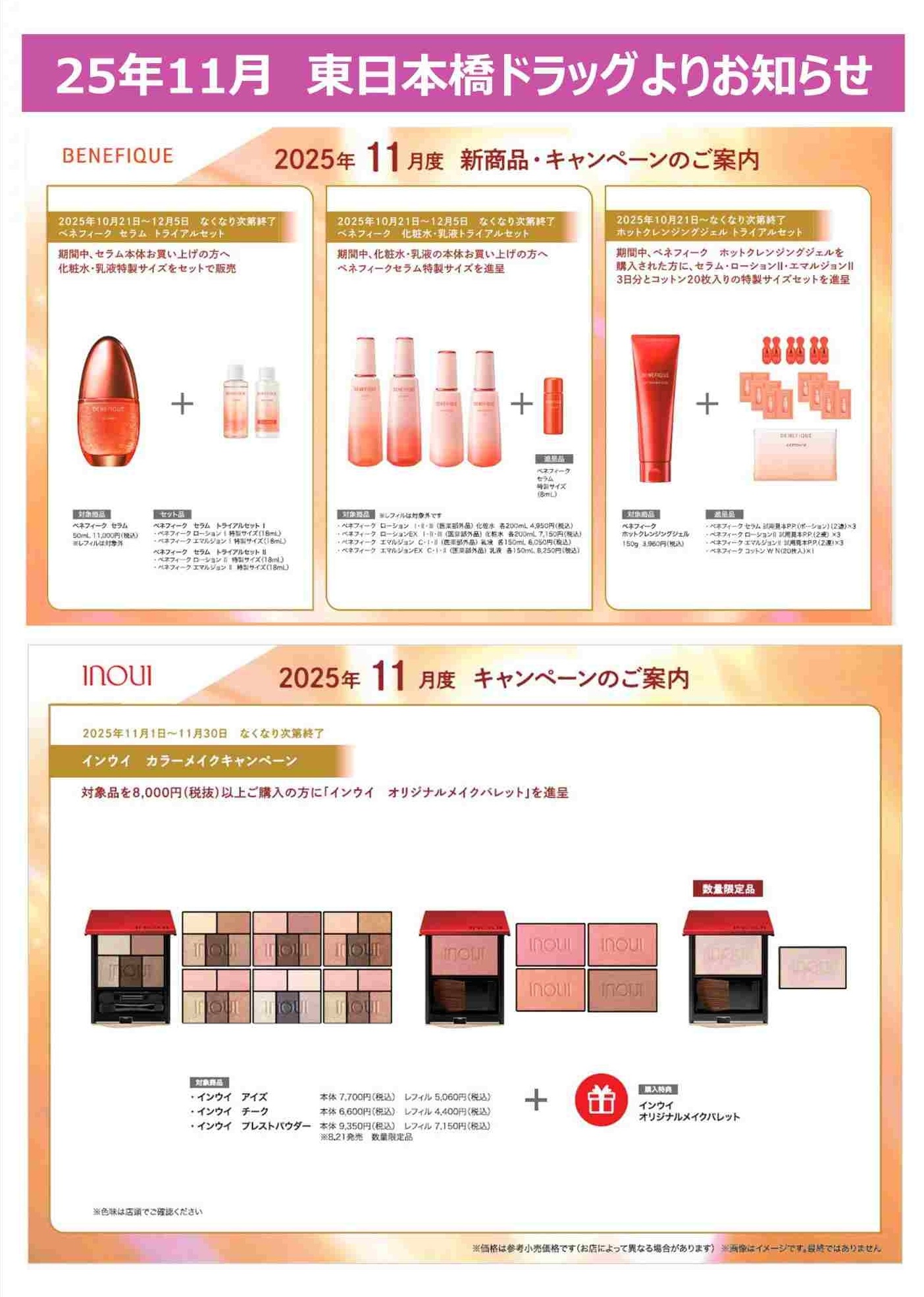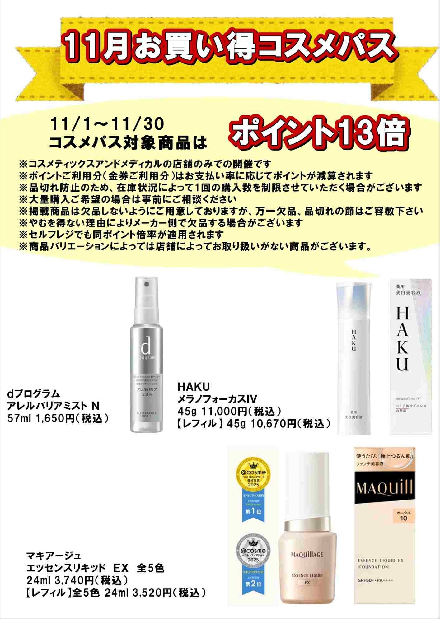 東日本橋ビルドラッグ店資生堂コーナーよりお知らせ