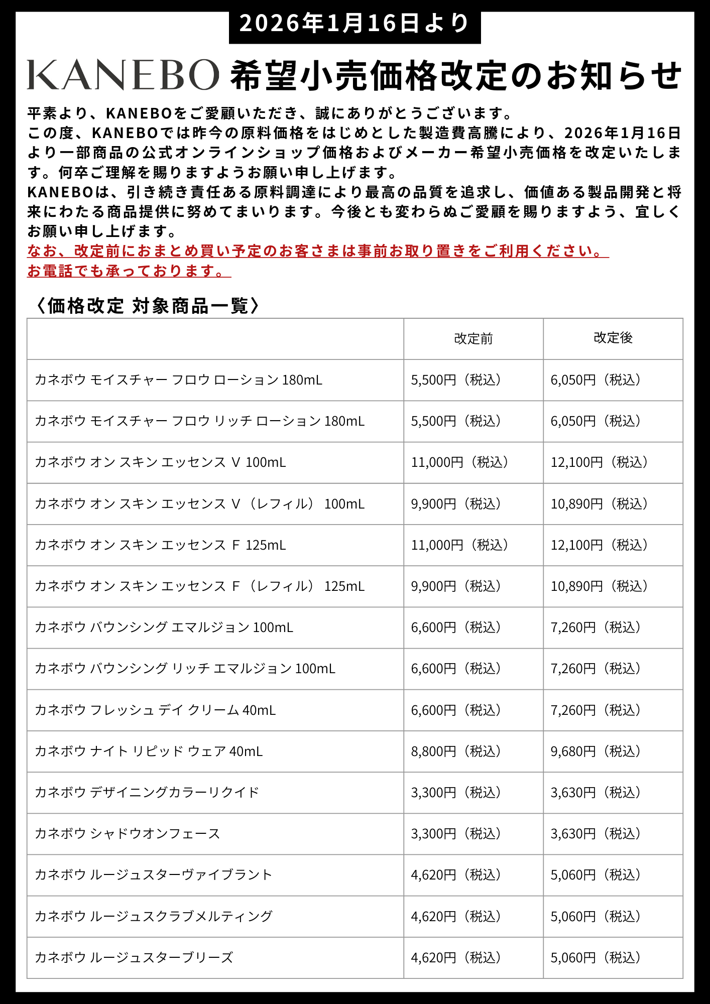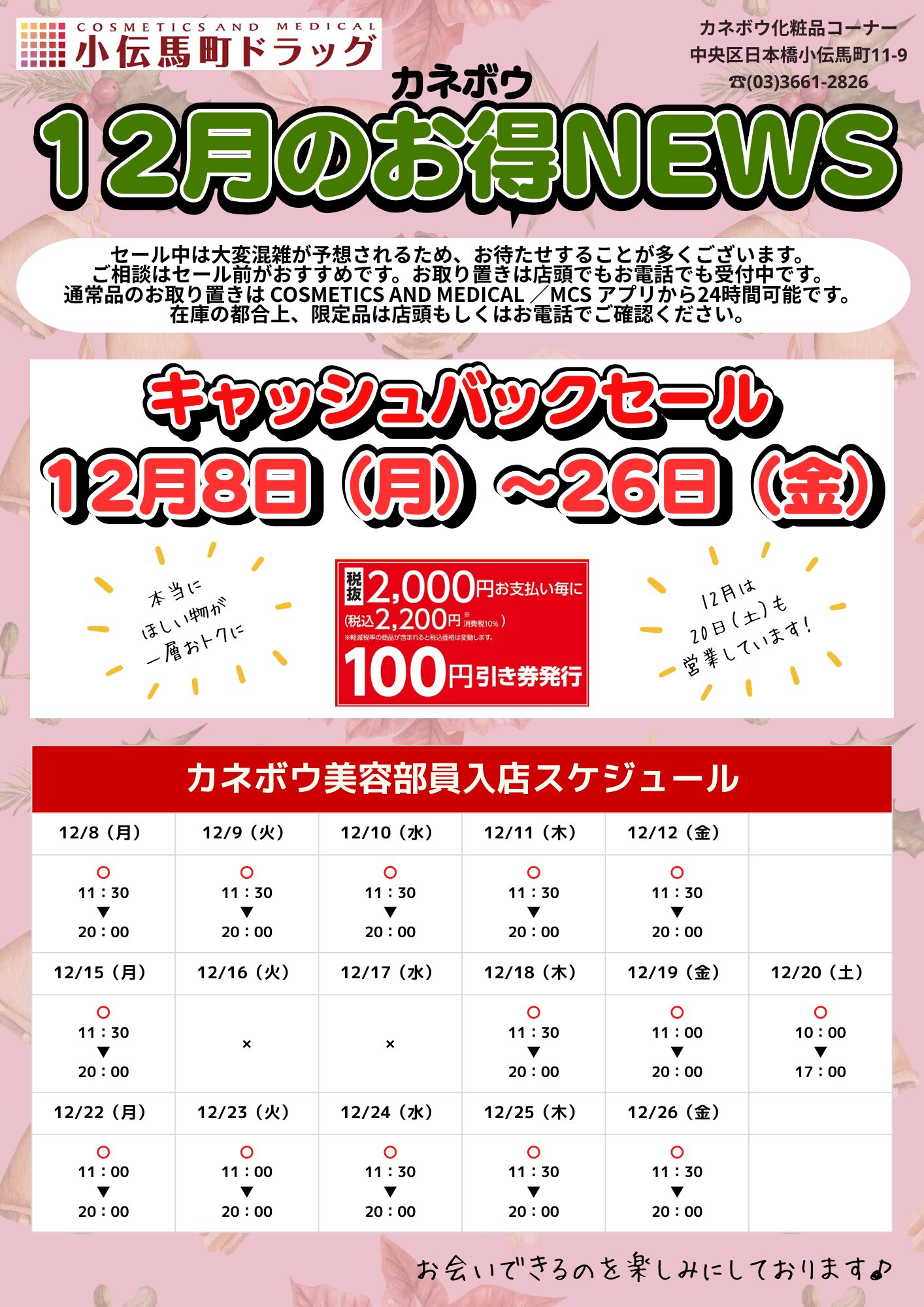 小伝馬町ドラッグ店カネボウコーナーよりお知らせ