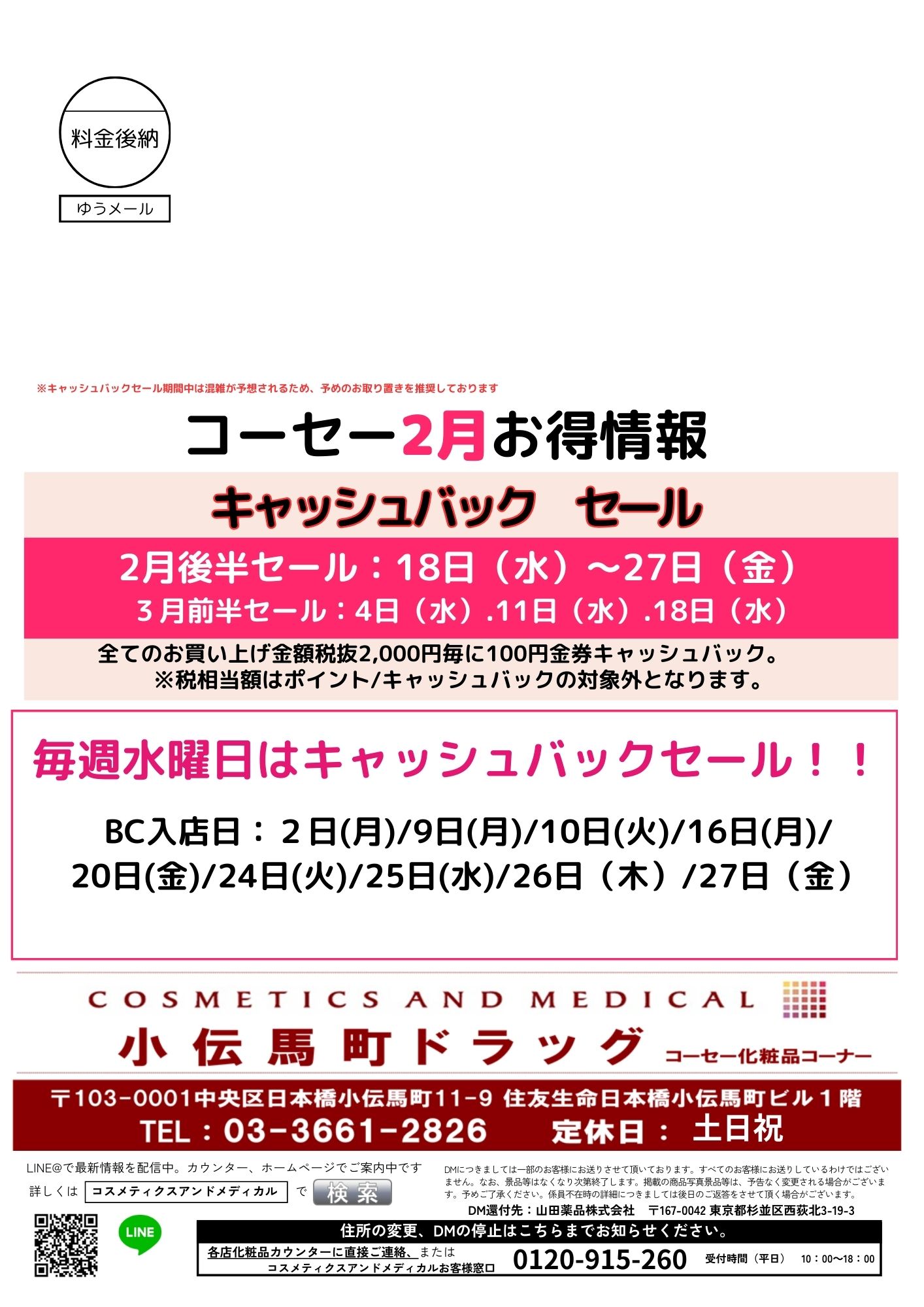 こんにちは、小伝馬町ドラッグ店コーセーからのお知らせです。