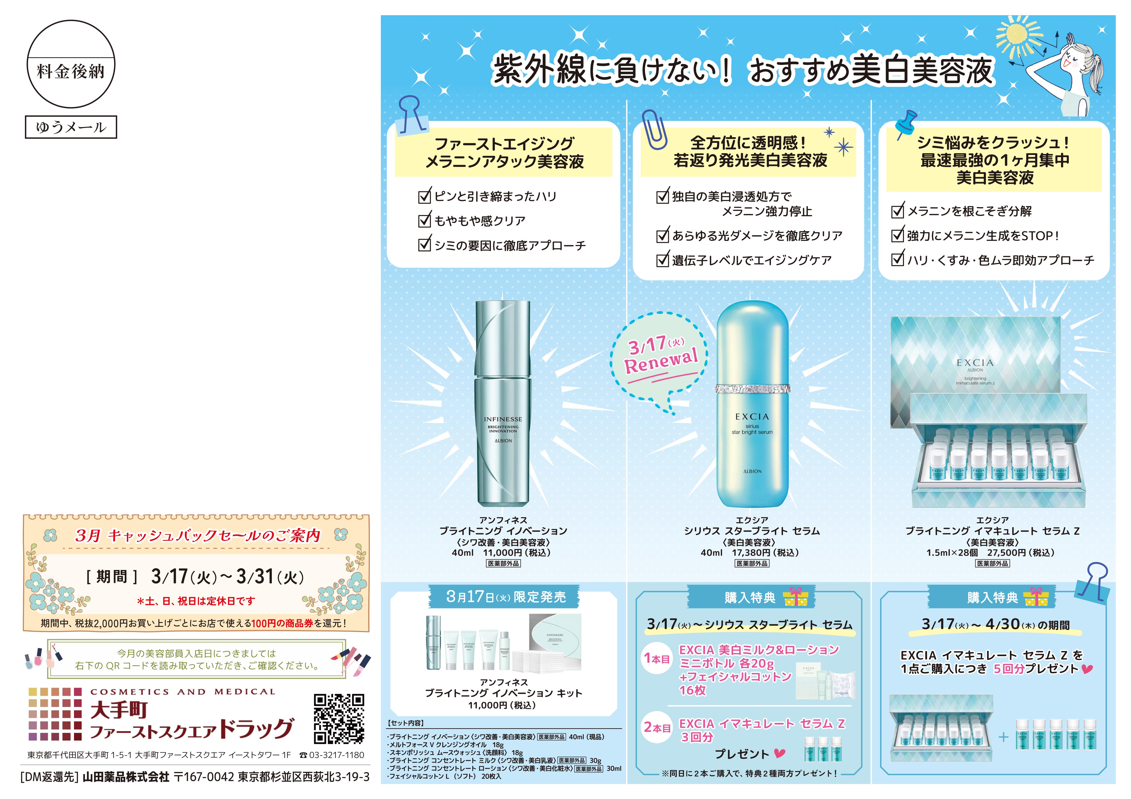 大手町ファーストスクエアドラッグ店アルビオンコーナーよりお知らせ