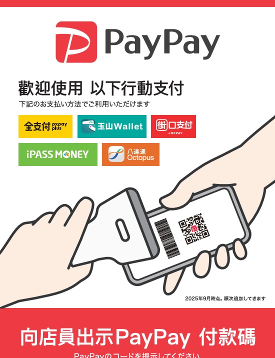 ご利用いただける決済方法が増えました。歡迎使用 以下行動支付。