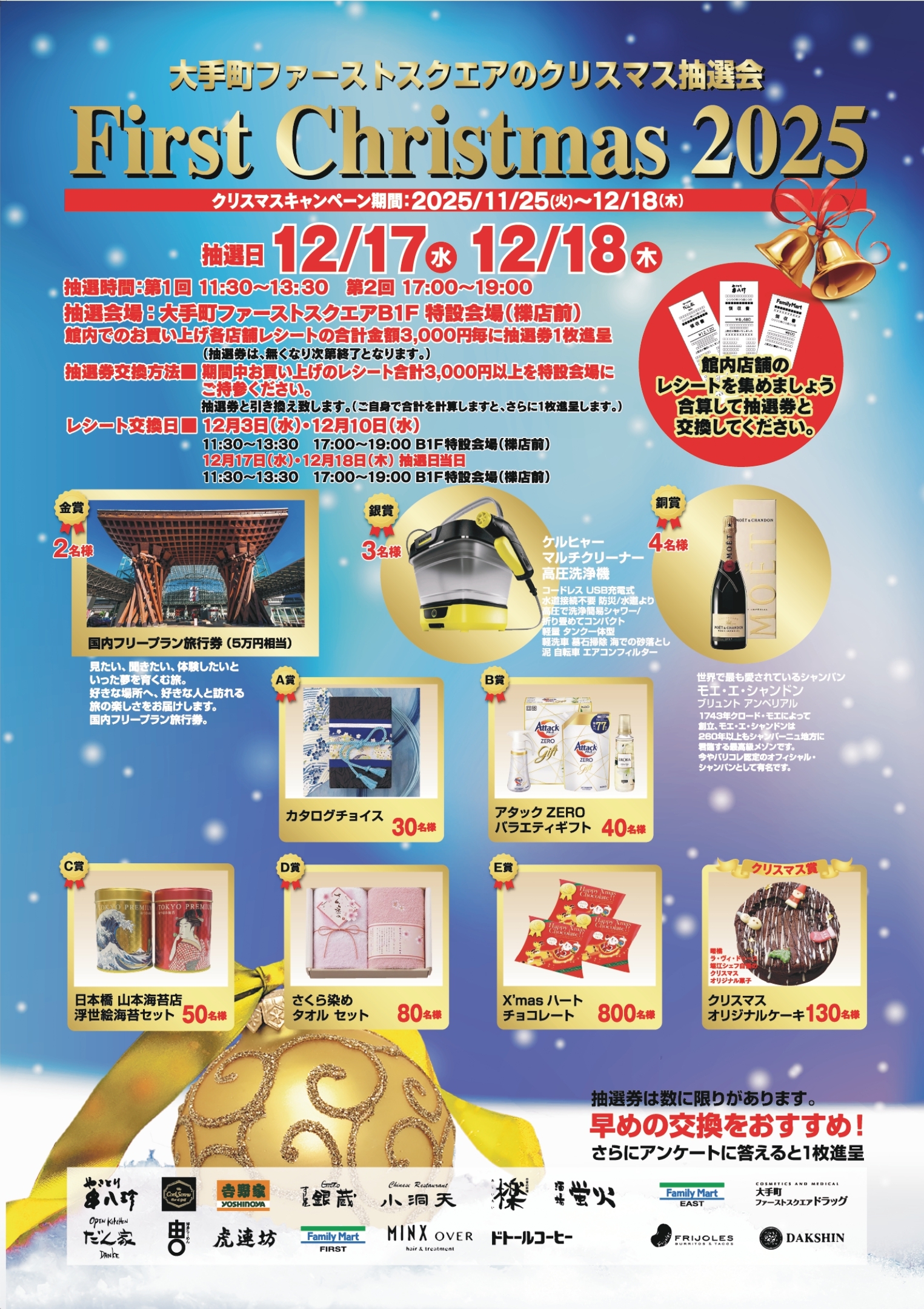 11/25-12/18 FirstChristmas2025 大手町ファーストスクエアのクリスマス抽選会(抽選日12/17,18)