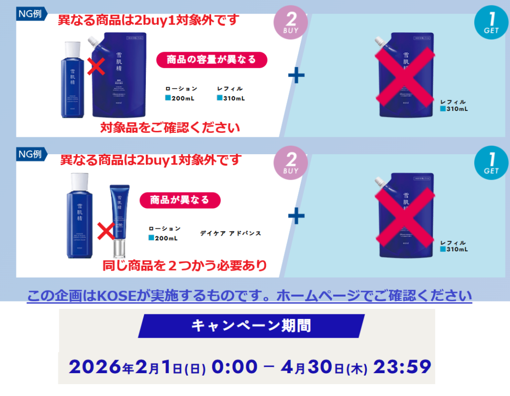 雪肌精の対象商品を同一商品2点購入で、もう1点プレゼント。期間:2026/2/1~4/30。応募方法・条件をわかりやすくまとめました。