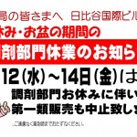 2015/07/22 / 最終更新日 : 2015/07/23 COSMETICS-MEDICAL 【処方箋受付、第1類販売】日比谷国際ビル薬局の夏休み期間のお知らせ 日比谷国際ビルドラッグは夏休み期間も通常通り営業いたします。 日比谷国際ビル薬局のみ8月12日(水)~14日(金)の3日間に限り 処方せん受付、第1類販売をお休みさせて頂きます。 なお、日比谷国際ビルドラッグは通常通り営 […]