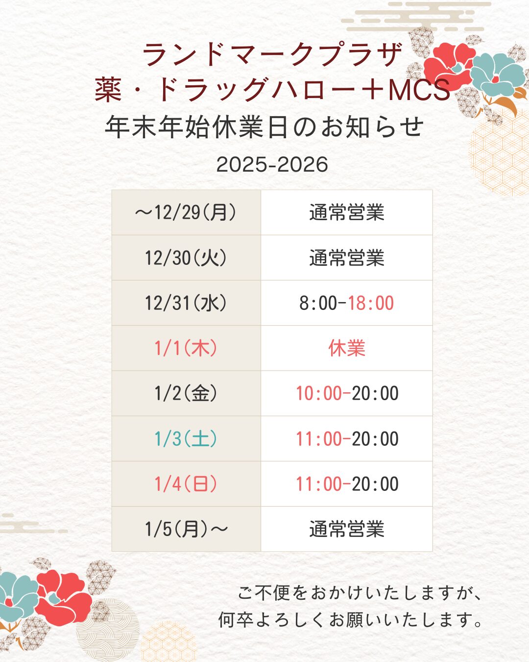 ランドマークプラザドラッグハロー店より年末年始のご案内